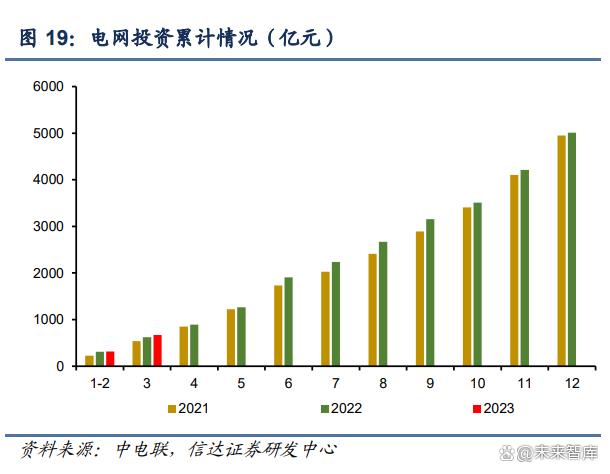 電網(wǎng)投資情況方面:1-3 月電網(wǎng)工程完成投資 668 億元,同比增長 7.5%。2022 年電網(wǎng)工程 審批及建設受疫情影響,開工及完成不及預期。2023 年開年電網(wǎng)投資開始發(fā)力,有望在今 年保持同比高增速。