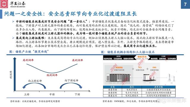 中游的儲(chǔ)能系統(tǒng)集成環(huán)節(jié)是安全問題“第一責(zé)任人” :中游儲(chǔ)能系統(tǒng)集成具備標(biāo)準(zhǔn)化機(jī)架式設(shè)備,組裝難度低。一般地,下游客戶對(duì)上游元器件的要求較高,而對(duì)集成商的品牌關(guān)注度較低,因此“低毛利、高營(yíng)收”的特性吸引了眾多企業(yè)入局,內(nèi)卷激烈。而下游的所有權(quán)、使用權(quán)和收益權(quán)分化,權(quán)責(zé)不明晰,均無法對(duì)全鏈條安全問題負(fù)責(zé)。由于儲(chǔ)能集成系統(tǒng)是對(duì)上游元器件的耦合,成為唯一能對(duì)整個(gè)儲(chǔ)能系統(tǒng)產(chǎn)品的安全負(fù)責(zé)的環(huán)節(jié)。
