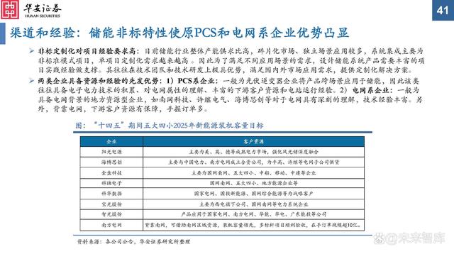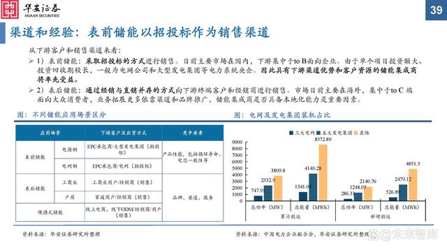 渠道和經(jīng)驗(yàn):表前儲(chǔ)能以招投標(biāo)作為銷售渠道。從下游客戶和銷售渠道來看: 1)表前儲(chǔ)能:采取招投標(biāo)的方式進(jìn)行銷售。目前主要市場(chǎng)在國(guó)內(nèi),下游集中于to B面向企業(yè)。由于單個(gè)項(xiàng)目投資額大、投資回收期較長(zhǎng),一般為電網(wǎng)公司和大型發(fā)電集團(tuán)等電力系統(tǒng)央企。因此具有下游渠道優(yōu)勢(shì)和客戶資源的儲(chǔ)能集成商將率先受益。 2)表后儲(chǔ)能:通過經(jīng)銷與直銷并存的方式向下游終端客戶和經(jīng)銷商進(jìn)行銷售。市場(chǎng)目前主要在海外,集中于toC端面向大眾消費(fèi)者,業(yè)務(wù)拓展更多依靠渠道和品牌推廣,儲(chǔ)能集成商是否具備本地化能力是重要因素。