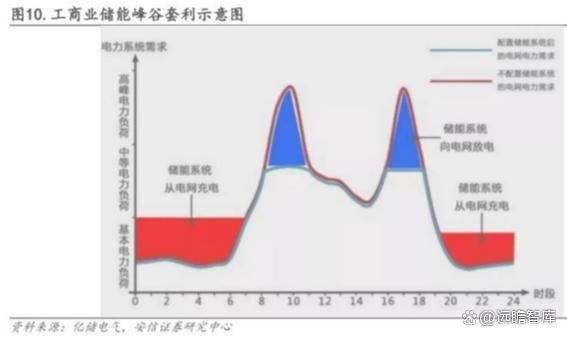安裝儲能可以通過峰谷價差套利來節(jié)約電量電費。儲能系統(tǒng)在用電低谷時利用低電價充電,在負荷高峰時,由儲能電池向負荷供電,實現(xiàn)峰值負荷的轉移,從峰谷電價中獲取收益。
