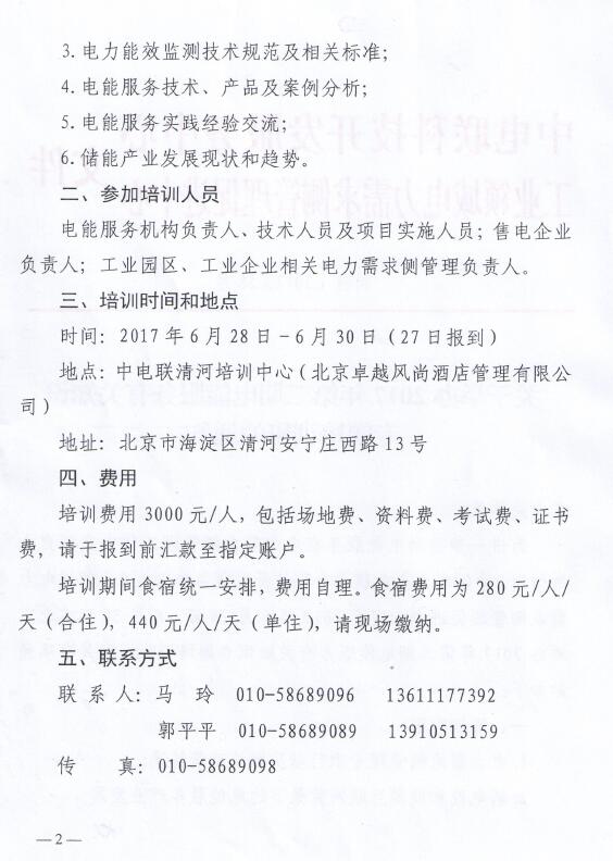 關(guān)于舉辦2017年第二期電能服務(wù)有關(guān)知識專題培訓(xùn)班的通知